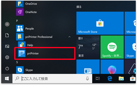 priPrinter インストール後、Windowsのスタートメニューから起動してください。